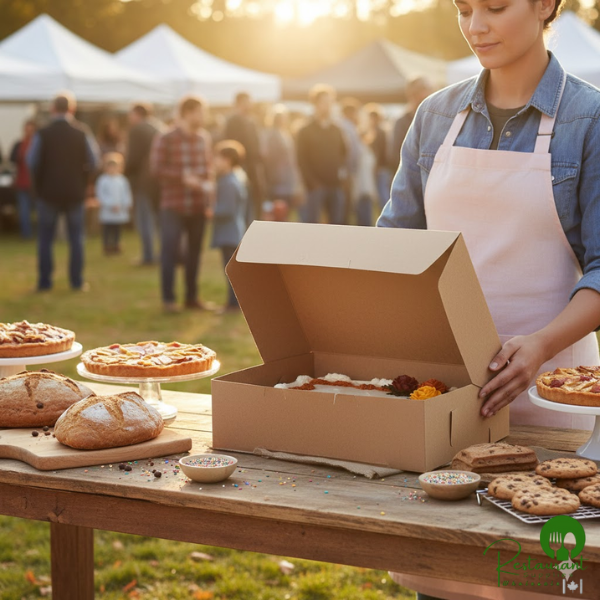 The plain kraft surface provides an excellent canvas for branding, labels, or decorative elements to match your bakery's style.