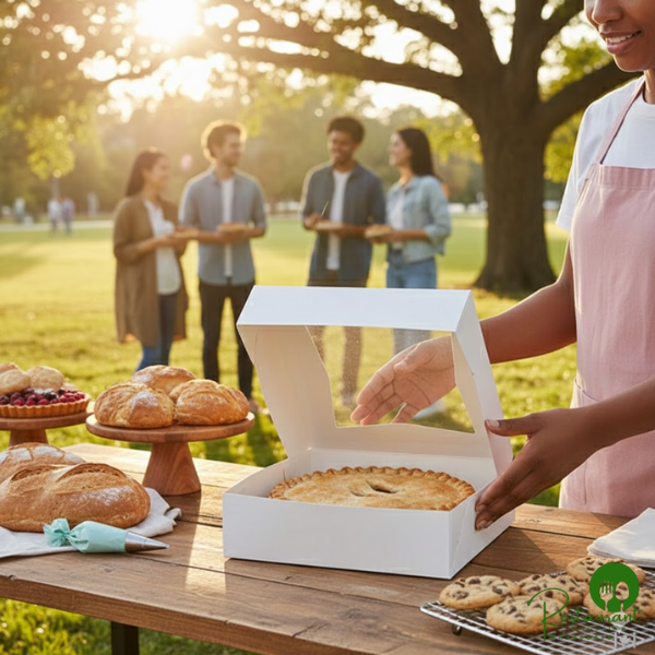 Ideal for bakeries, cafes, and catering services seeking professional packaging solutions. The clean white color offers sophisticated presentation while the fold-flat design optimizes storage space. After use, simply remove the window for easy recycling.