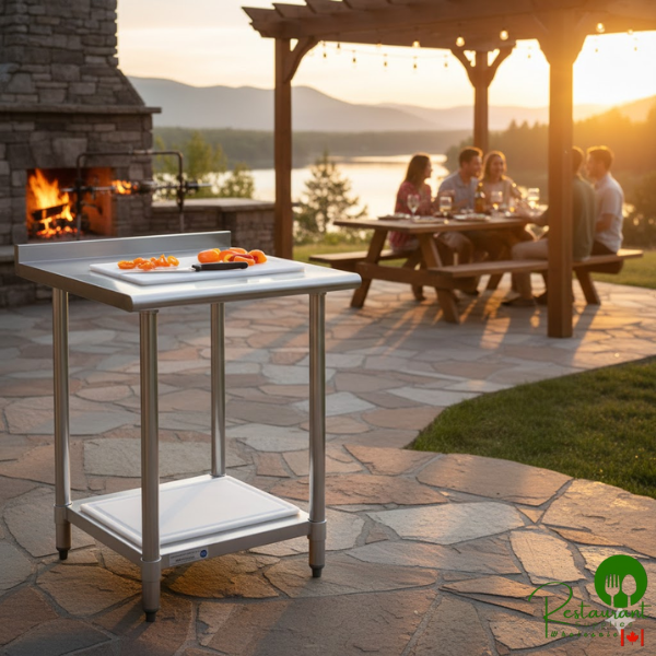 This table is made to perform the basic tasks of a work table like offering you a place to prepare fruits and vegetables, open cans, mix ingredients, and plate meals but without the initial cost of a heavier gauge table. The 2-inch backsplash helps keep items from sliding off the table.