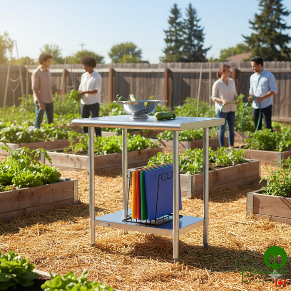This table is made to perform the basic tasks of a work table like offering you a place to prepare fruits and vegetables, open cans, mix ingredients, and plate meals but without the initial cost of a heavier gauge table.