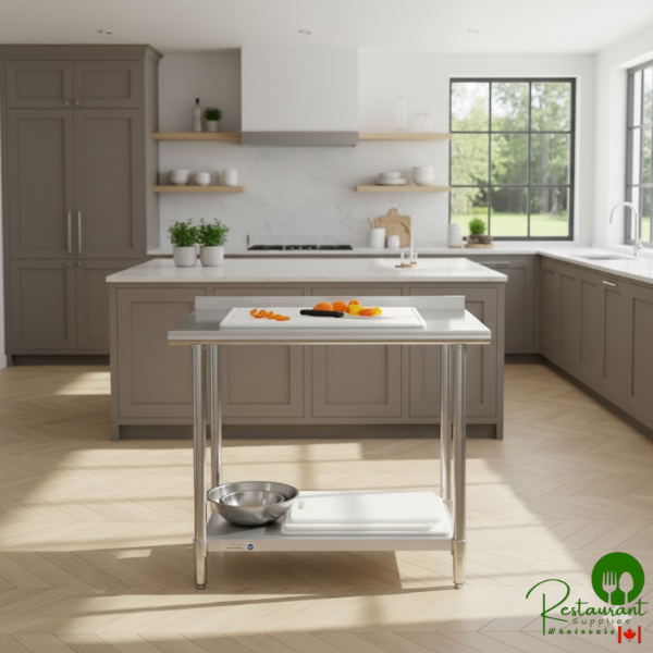 Note: This economy work table is designed for light to moderate duty applications. For heavy-duty continuous use, consider a heavier gauge stainless steel table.