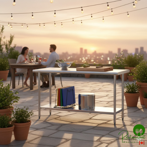 Ideal for commercial kitchens, cafes, catering operations, and foodservice establishments, this Steelton work table combines practical workspace expansion with budget-conscious pricing. The extended 60-inch length accommodates multiple users or complex preparation tasks, while the undershelf maximizes vertical storage efficiency. Engineered for light-duty commercial applications, this table provides reliable performance for fundamental kitchen operations.