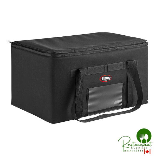 Transport food safely to offsite locations with the Sterno 70512 large insulated catering food carrier. This professional-grade carrier is designed to hold three full-size food pans containing hot or cold appetizers, entrees, and side dishes. Featuring advanced antimicrobial technology and multilayered insulation, this carrier ensures food safety and temperature integrity during transport, making it ideal for catering services, events, and offsite food service operations.