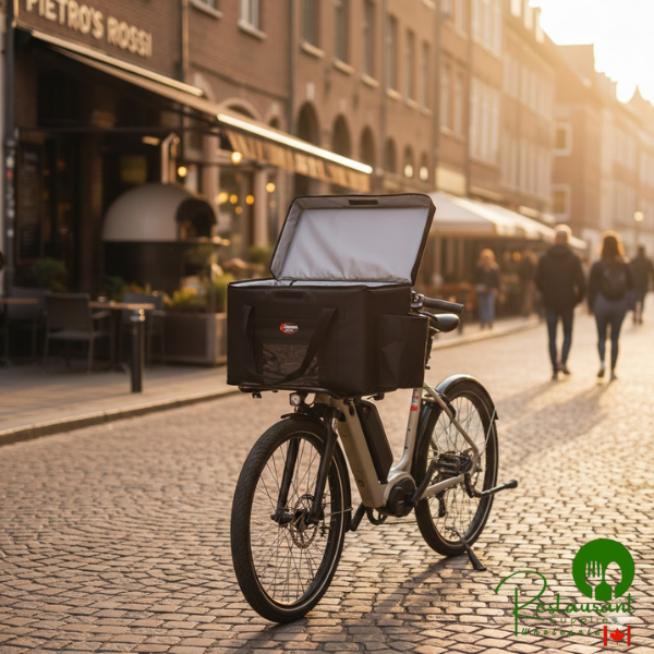 The Sterno 70524 small delivery deluxe insulated food carrier is designed for efficient meal delivery with added convenience features. The exterior pockets accommodate beverages while the ID window streamlines order management. Perfect for small delivery operations, personal catering, and mobile food services requiring organized transport.