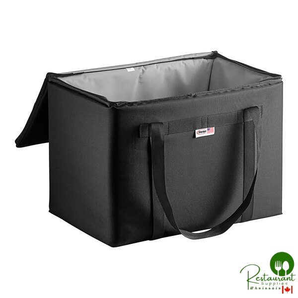 Built with professional-grade materials including durable black nylon exterior and tear-resistant antimicrobial vinyl interior. The multilayered foam insulation creates an effective thermal barrier, maintaining safe food temperatures during transport. The passive compartment design accommodates standard food service pans while the customizable exterior offers branding opportunities for catering businesses.