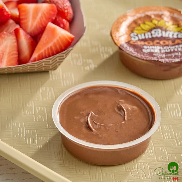 Smooth, delicious, and peanut-free, this SunButter chocolate sunflower butter spread is a must-have for any establishment! SunButter is a great peanut butter alternative without any of the top 8 food allergens. Made from roasted, U.S. grown sunflower seeds, this smooth and creamy blend features rich cocoa to complement the sweet and savory SunButter. This delicious and decadent chocolate spread is the perfect addition to sandwiches and can be used in a variety of recipes. Perfectly portioned in 1.4 oz. convenient, disposable cups, this single serving SunButter can be used on the go and assures guests that there has been no cross contamination. Simply place them in caddies on your tabletops, add them to the breakfast bar in your hotel or cafeteria, or leave them in the employee break room of your place of business.