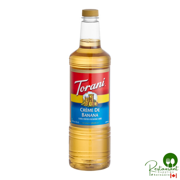 Bring all new flavors to your specialty drink menu with this Torani creme de banana flavoring syrup! This tempting flavor will complement your beverages without overpowering them or being too sweet, while the user-friendly bottle will be convenient for your busy baristas to use. The syrup is packaged in a convenient plastic bottle which prevents broken glass in the prep area, and it can easily be paired with a compatible pump (sold separately) for quick, efficient service during peak serving hours. Use this flavor for frappes, iced coffees, smoothies, and even baking!