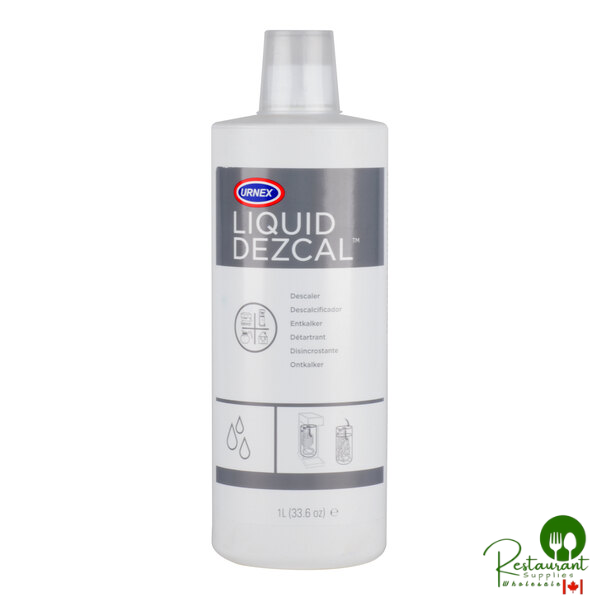 Keep your coffee equipment operating in top condition with Urnex Dezcal liquid coffee equipment scale remover! Its non-toxic liquid formula is ideal for fast and effective descaling of boilers, heating elements, and other areas prone to scale build-up. Each bottle contains approximately 20 uses.