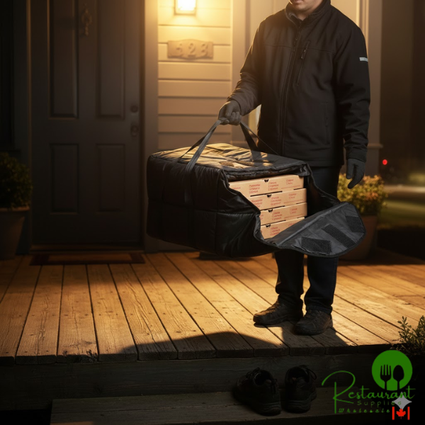Designed specifically for commercial pizza delivery, this bag stabilizes internal temperatures during transport. The intelligent thermal management system ensures pizzas arrive hot and fresh, maintaining crust crispness and cheese melt. The generous capacity handles multiple large pizzas simultaneously, making it ideal for busy delivery services and large orders.