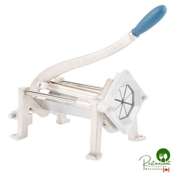 Efficiently prepare potato wedges for sides and entrees with this durable manual cutter. Transforms whole potatoes into eight uniform wedges in one motion—ideal for frying, roasting, or baking. Built with a nickel-plated cast iron frame for lasting commercial use.