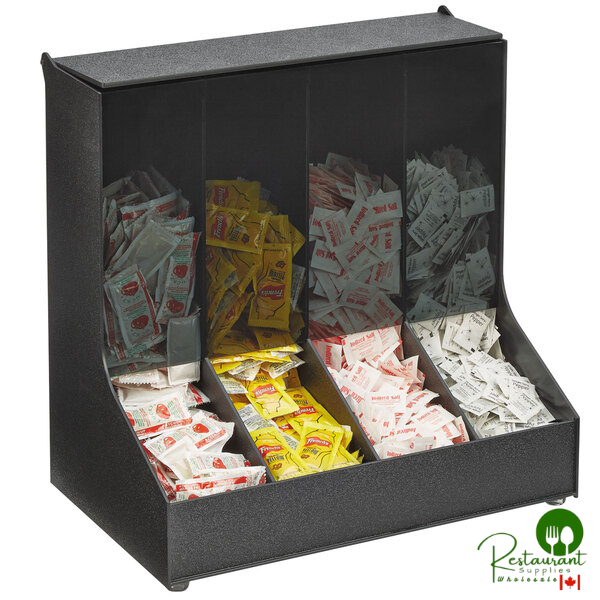 Perfect for beverage stations, self-serve kiosks, busy countertops, and cafeteria settings, this organizer provides organized access to condiments while ensuring product freshness through automated rotation. The design allows customers to easily access sugar packets, ketchup, mustard, salad dressings, and other portion-controlled items.