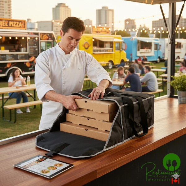 The integrated heating pad allows pre-warming before delivery. Simply plug into a 120V outlet, select temperature, and heat the bag. This extends your delivery radius while ensuring pizzas arrive oven-hot, eliminating temperature complaints.