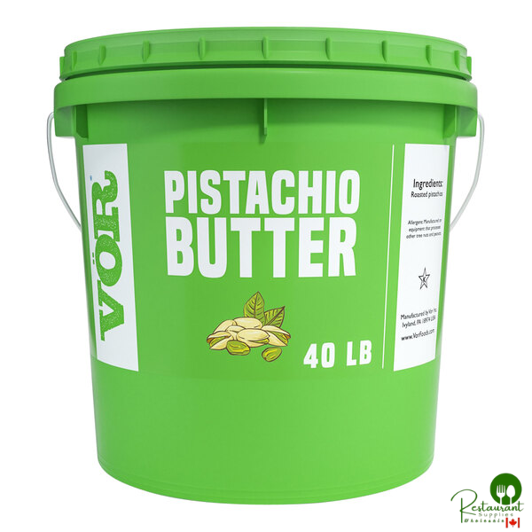It's packaged in a bulk 40 lb. pail for high-volume establishments. While this pistachio butter is delicious on its own, it can also be used in a wide range of applications. Swirl it into baked goods and confections such as cookies, no-bake dessert bars, or Dubai-style chocolate bars. Its sweet flavor makes it a delicious addition to chocolate banana smoothies or drizzled over trendy acai bowls. No matter what you use it for, your patrons will fall in love with the nutty flavor and naturally nutrient-packed recipe of this pistachio butter.
