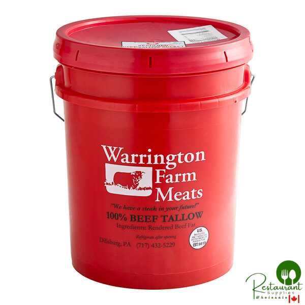 Whether you're tailoring your menu to the nose-to-tail eating trend or creating house-made soaps and skincare, this Warrington Farm Meats beef tallow is a must-have ingredient! Locally raised and processed in Dillsburg, PA, this premium beef tallow is rendered beef fat that has a wide variety of applications. It's an ideal option for use as a cooking fat since it has a rich, earthy flavor and a high smoke point. This makes it perfect for frying and sauteing foods like french fries and chicken tenders, as well as for searing meats and veggies. Plus, it can even be used as a replacement for butter or shortening in baking to add extra flavor to your breads, cookies, and pastries!