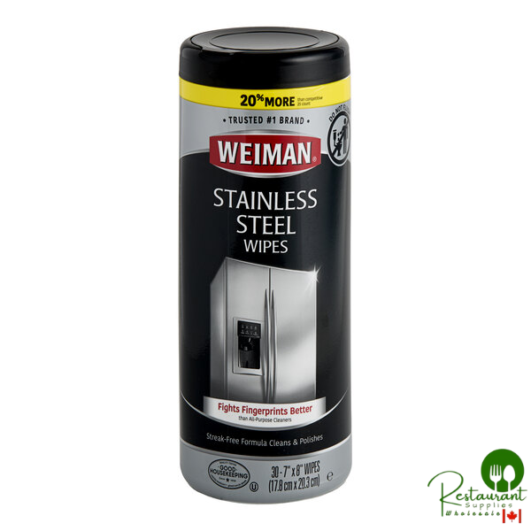 Keep your restaurant, bar, or hotel looking pristine by using these Weiman W92 30 ct. stainless steel cleaning and polishing wipes to clean your stainless steel surfaces! They are designed to clean and protect stainless steel surfaces so they can resist fingerprints, water spots, and grease. The special formula also helps to repel dust and dirt so your kitchen can keep looking bright and professional for longer.