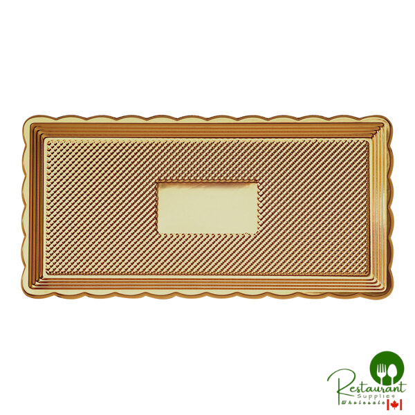 Elevate your dessert presentations with the Welcome Home Brands 018/3 medoro tray. This elegant gold tray features a dazzling golden finish with delicate scalloped edges, perfect for showcasing cakes, cookies, pastries, and mini sandwiches. Crafted from moisture-resistant plastic with functional design elements for secure dessert display and transport.