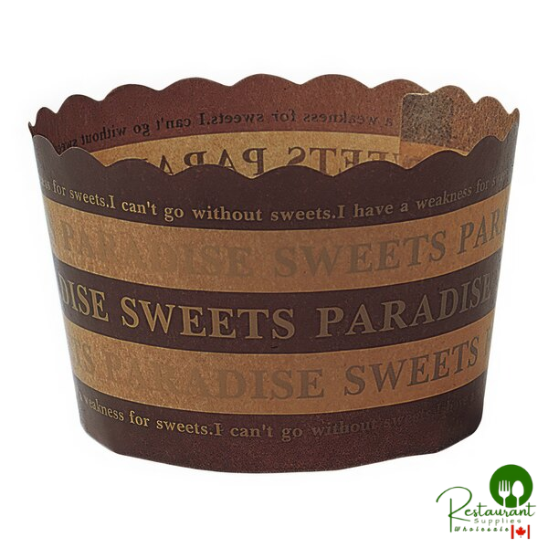 Add charming personality to your baked goods with these decorative brown striped baking cups. Featuring endearing phrases like "SWEETS PARADISE" and elegant scalloped edges, these convenient cups simplify your baking process with no-mess efficiency and delightful presentation.