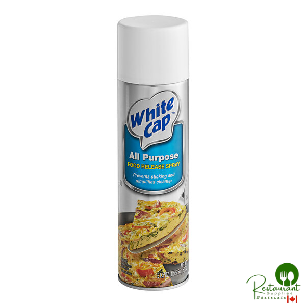 Cut down on time spent scrubbing and scraping while increasing the efficiency of your kitchen with this White Cap all-purpose food release spray! This spray helps prevent food from sticking to your pans and utensils, which makes it perfect for use in your busy commercial kitchen.