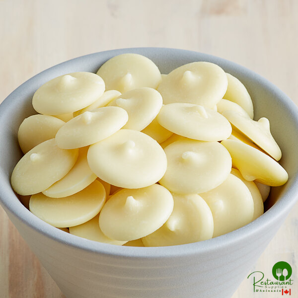 Create specialty molded treats and confections with these premium white chocolate wafers! Crafted with milk solids, sugar, and cocoa butter from sustainably-harvested cocoa beans, these fine chocolate wafers deliver a rich flavor and smooth performance you can rely on.