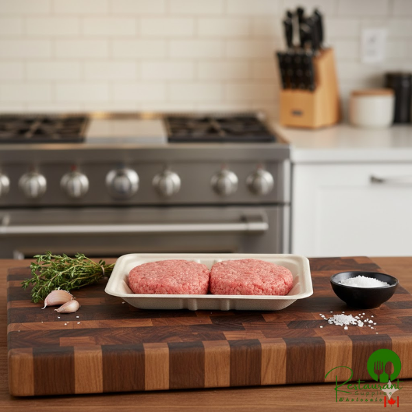 Featuring a soak-proof design with a bio-based liner, it prevents leakage and keeps food fresh. The tray is durable enough to stand up to various food types and consistencies while remaining conveniently disposable.